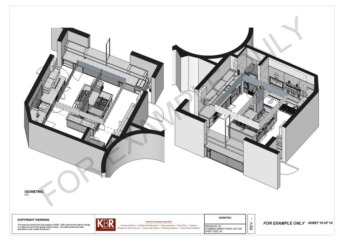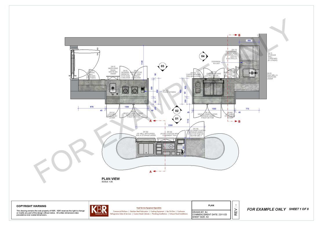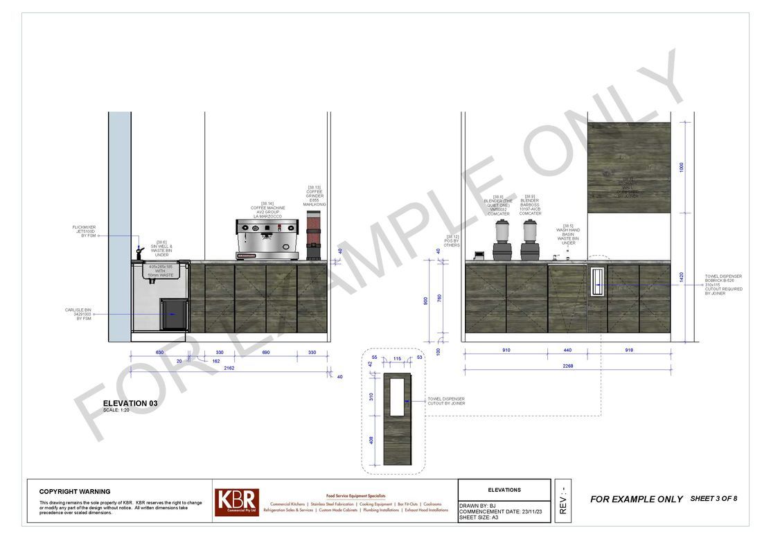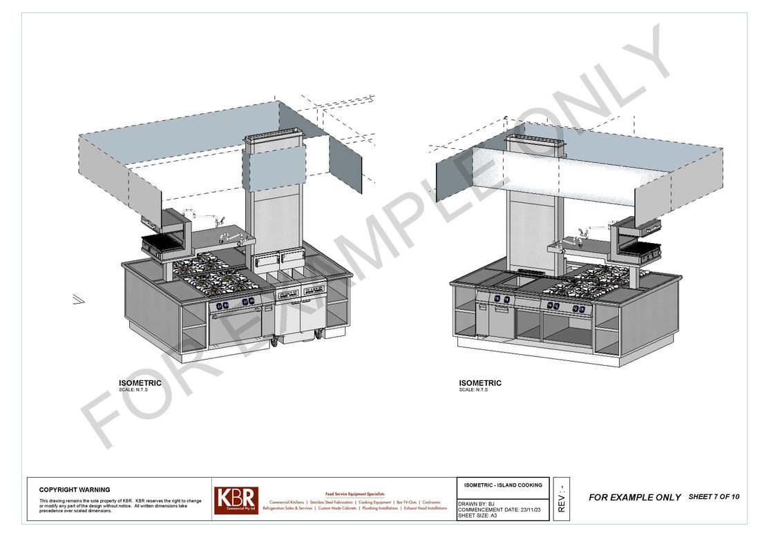 With the involvement of architects and our clients we also offer a full kitchen design plan to scale to submitting quotations. On acceptance of our proposal we then proceed with correct service plan drawings to ensure builders or shop fitters can proceed with the installation of correct services.