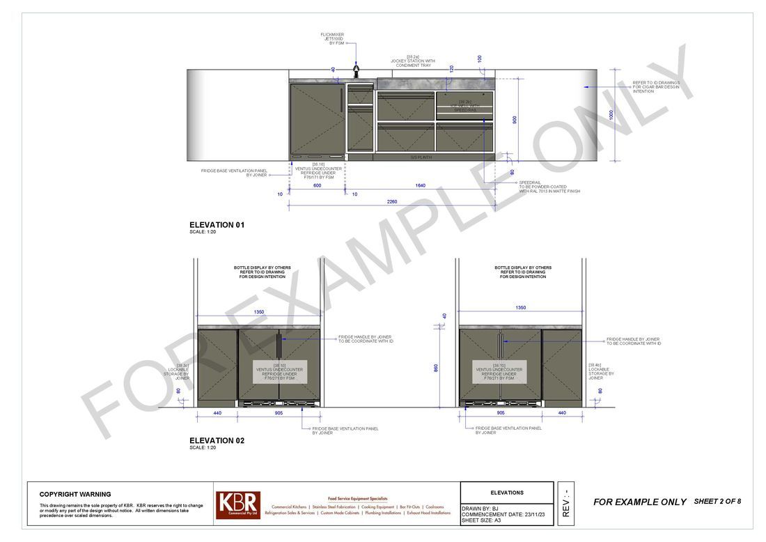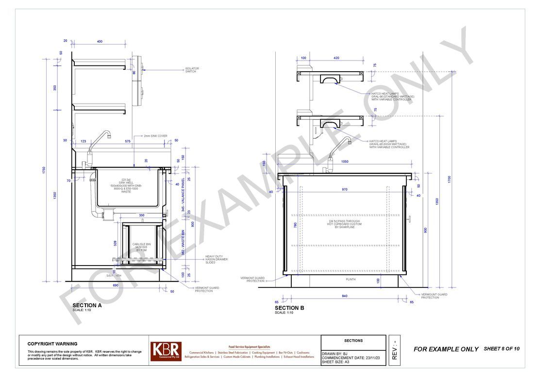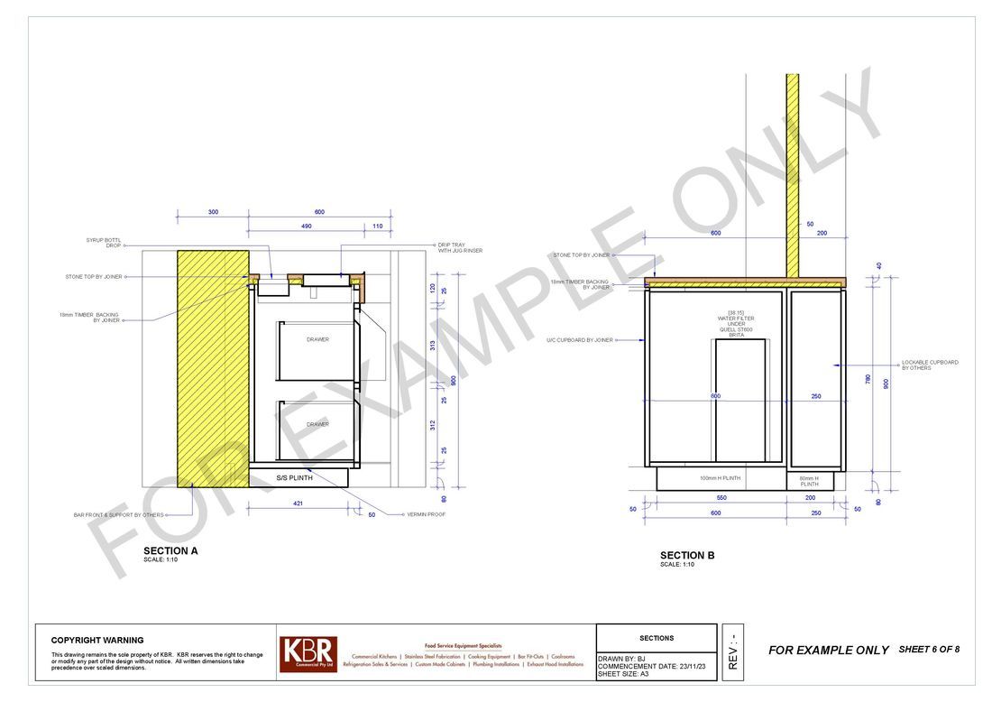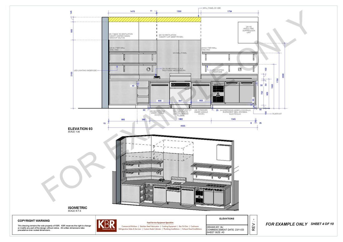 With the involvement of architects and our clients we also offer a full kitchen design plan to scale to submitting quotations. On acceptance of our proposal we then proceed with correct service plan drawings to ensure builders or shop fitters can proceed with the installation of correct services.